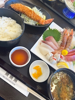 こんばんは❣️ アースのちあきです✌️ 今日は朝から活動してきたよ~ 海鮮料理が食べたくて お友達と一緒に 知多の方まで行ってきました✨️ 11:00からオープンなのでそれに合わせて向かったら 既に満席で待ち状態でビックリ😳 1時間ぐらい待ちました。笑 そして悩みに悩んで注文したのが お刺身定食です✨️ エビフライもついてて めちゃくちゃボリューミーだった👍 そして新鮮なお刺身でとっても美味しかった🤤💓 その後はちゃんとアイス🍨も食べて大満足‼️ また行きたい🥺 そして今日は華金🌹 楽しんでいきましょ✨️ よろしくお願いします🫶